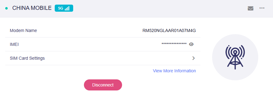 Click View More Information to show more cellular information, including the modem details, SIM card details, Internet details, and cellular details.